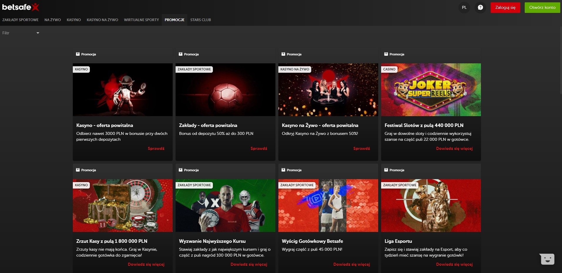 | Oferta powitalna – kasyno na żywo | Bonus od depozytu 50% do 500 zł na gry w trybie na żywo. Do aktywowania promocji potrzeba wpłacić co najmniej 30 zł |