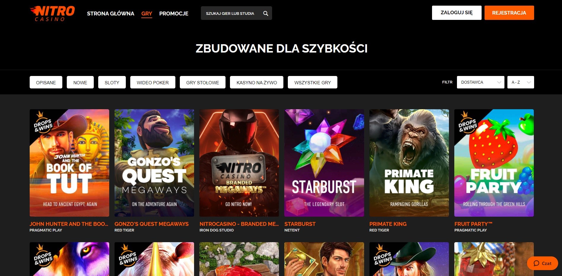 Twórcy postarali się o to, żeby nikomu nic nie zabrakło podczas poruszania się po ich serwisie. Dlatego postarano się o zbudowanie biblioteki, zawierającej blisko 2000 tytułów pochodzących od ponad 20 różnych wydawców. Nitro gry online zostały podzielone na kilka kategorii. Dzięki temu bardzo łatwo jest odnaleźć się w tym ogromie, a wyszukanie konkretnej gry dopasowanej do odbiorcy, to kwestia kilku sekund. Sekcje z grami hazardowymi w kasynie Nitro są następne.