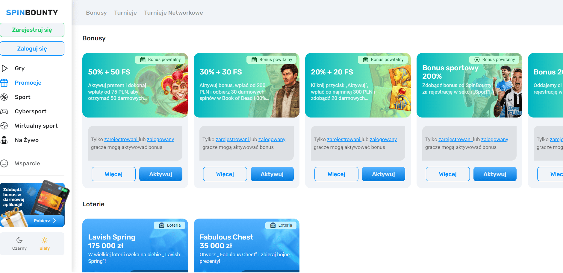 Niezwykle istotną część oferty kasyna SpinBounty stanowią bonusy bez depozytu i promocje. Opisujemy je w skrócie w poniższej tabeli. Pamiętaj jednak, że mogą się one często zmieniać!